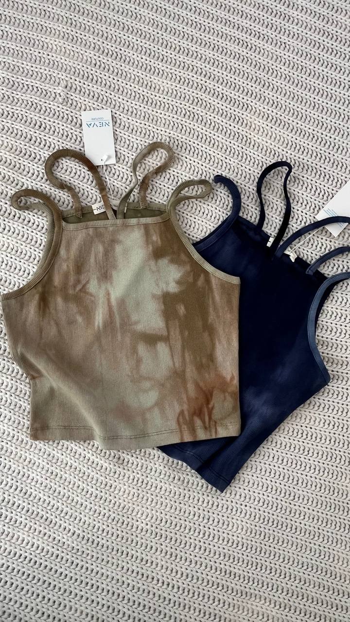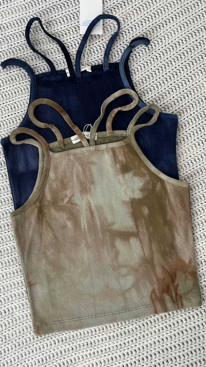 خانه پوشاک دخترانه تاپ آبرنگی بندی نسکافه ای و سرمه ای