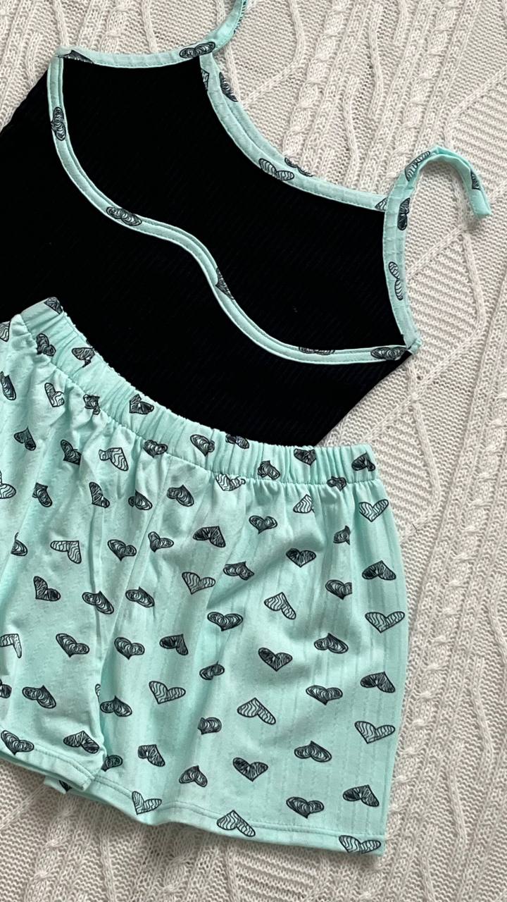 ست کراپ شلوارک دخترانه مشکی آبی